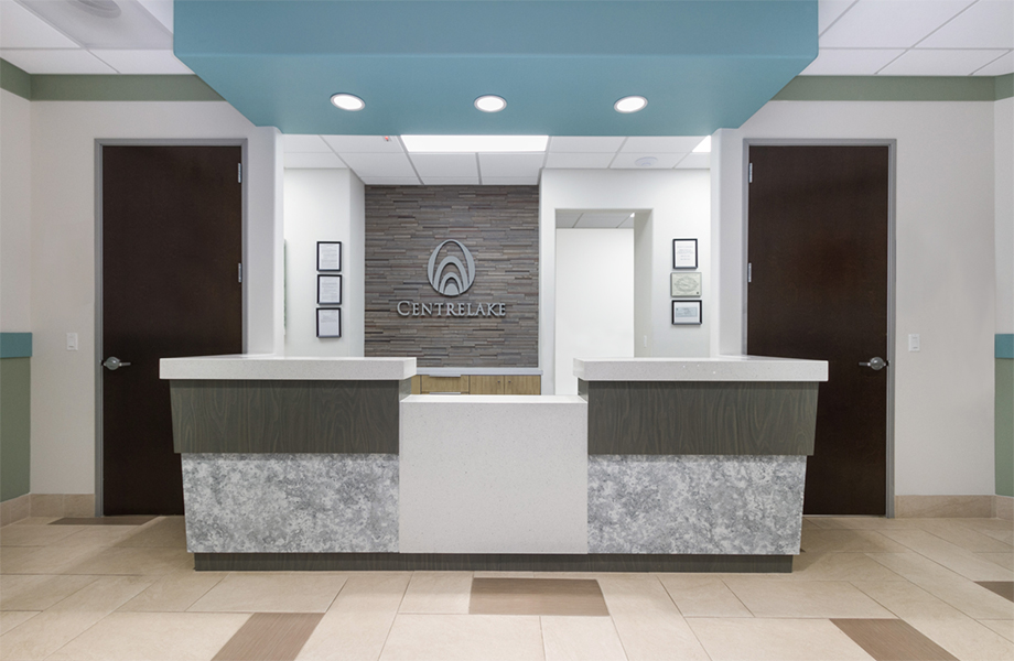 To pull in from the gray-toned logo, Centrelake Imaging and Oncology uses Green Slate Birchply and Bubble Science to welcome patients to their practice.