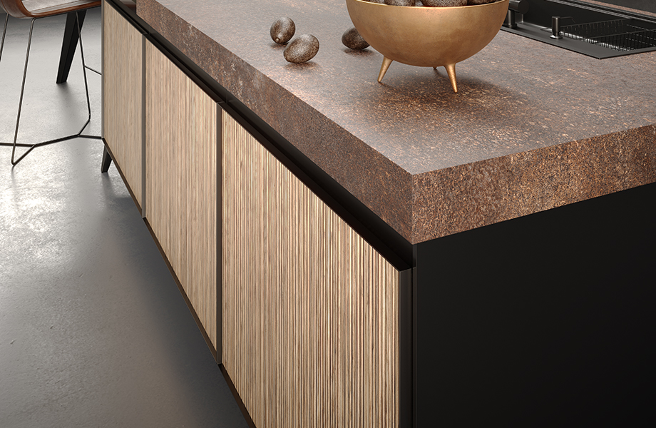 Drawing inspiration from the Piedmontese reedbeds which run along the Tanaro river, it highlights the dark and light contrast, allowing to discover the whole charm of a ribbed surface.