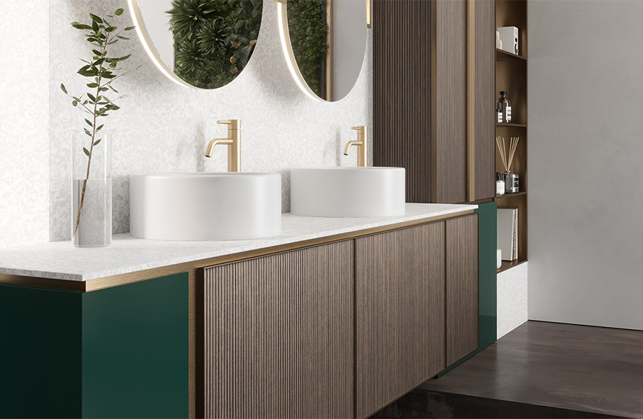 With their geometric deep rhythm, the “reeds” create movement and, simultaneously, give equilibrium to the whole design creativity. Tuet becomes a sinuous dance of texture, where the repetition of wood reliefs forms an atmosphere of natural wellbeing. Suitable only for vertical application, Tuet is designed to be in combination with two wood decors: Caravella Light and Caravella Dark.