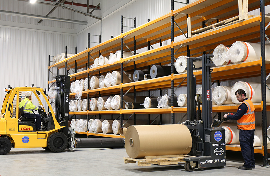 En rull med kjernepapir mates først gjennom en maskin som impregnerer papiret med fenolharpiks. Dette papiret utgjør basen til det ferdige produktet og sørger for nødvendig styrke og stivhet. Når papiret har tørket, blir det lagret for å være klart til bruk senere i produksjonsprosessen.