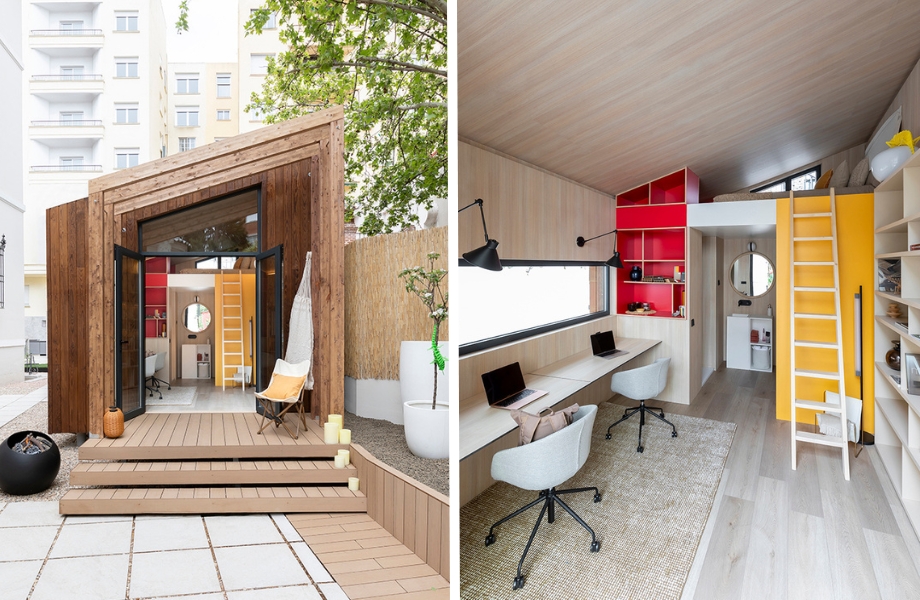 Wood Modulor combineert de charme van een boomhut met moderne architectonische innovatie en creëert dynamische leefomgevingen die aan elke behoefte voldoen. Formica HPL in F3209 Sol en F1238 Carnaval voegen levendige kleuren toe aan het interieur, terwijl F1079 Natural Oak en F2255 Polar White bijdragen aan een gezellige en huiselijke sfeer.