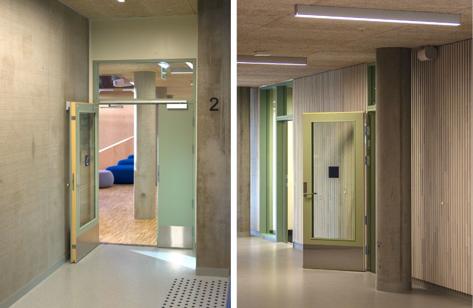“De keuze voor Formica® HPL werd ingegeven door het onderhoudsgemak, het brede kleurenspectrum en de uitzonderlijke slijtvastheid. In een basisschoolomgeving bevordert het diverse kleurenpalet niet alleen een positieve leeratmosfeer, maar dient het ook praktische doeleinden. Formica® HPL is slijtvast en zorgt ervoor dat de deuren schoon en representatief blijven, wat essentieel is voor het in stand houden van deze stimulerende omgeving.” Nordic Door