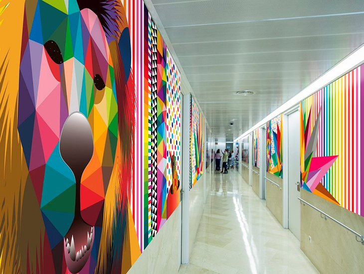 Straatkunstenaar Okuda San Miguel laat zijn Younique stempel achter op het ziekenhuis