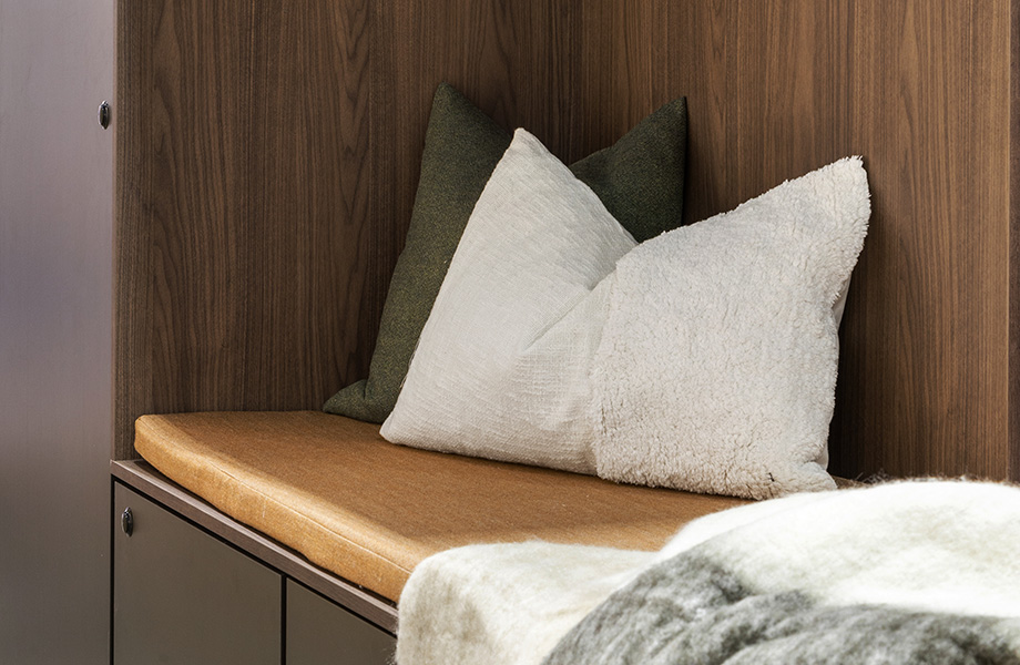 Formica®-laminat från Colors- och Woods-kollektionen valdes för möblerdesigner i Maritime Montering Group nya sortiment, som debuterar på Nor-Shipping i juni 2023.